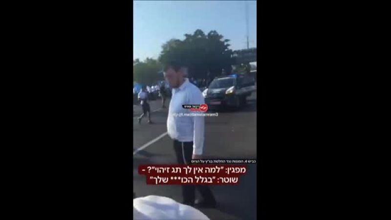 מפגין: "למה אין לך תג?" שוטר: "בגלל הכו* שלך": היום בהפגנה בכביש 4 שוטר "סמוי" העיף ילד בכוח וסירב לתת את שמו למפגינים. כשנשאל מדוע אין לו תג הוא ענה "בגלל הכוס** שלך".