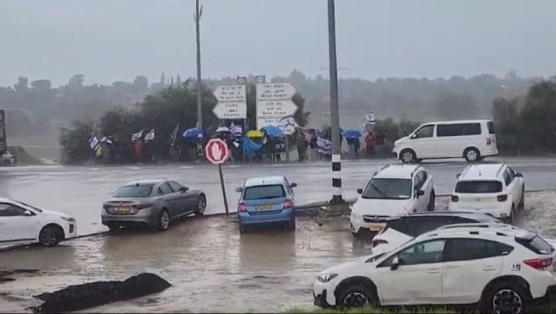 בגשם שוטף עשרות ישראלים ממתינים לארונות ארבעת החללים